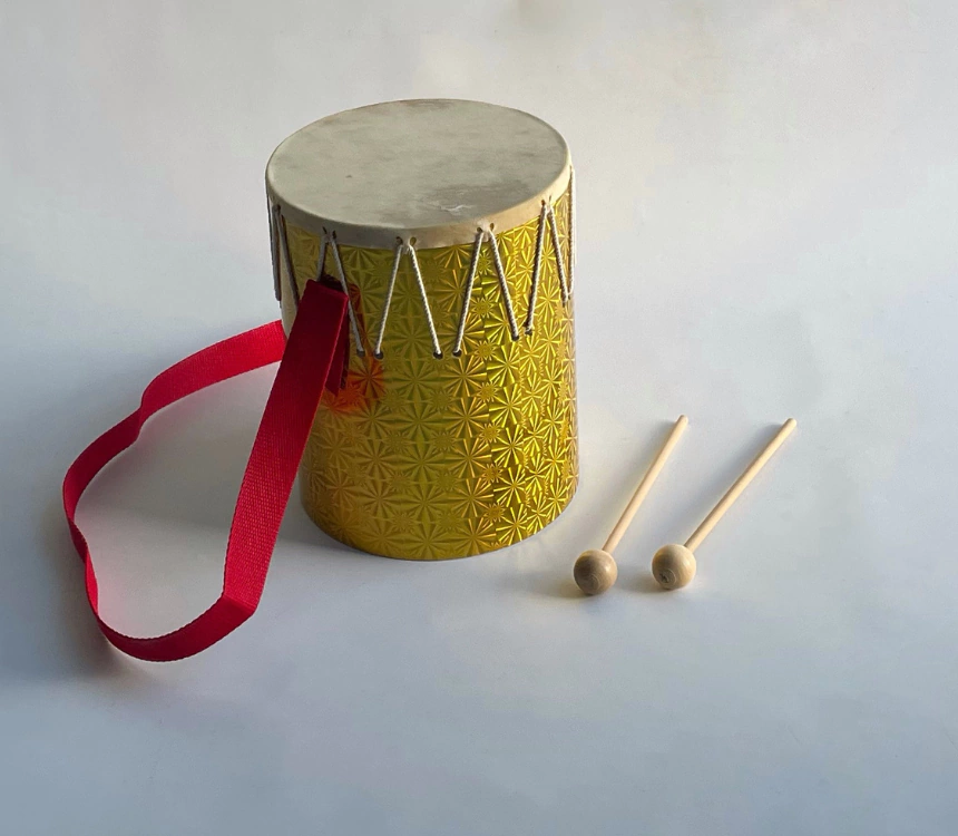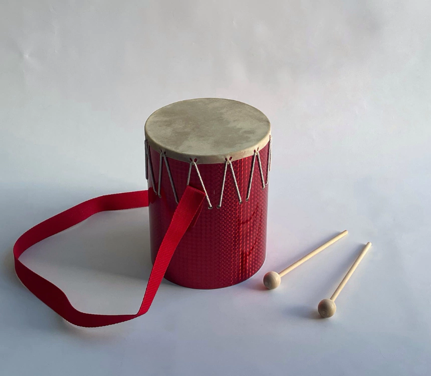 El bombo mide 16cm de diametro y 20cm de ancho, contiene dos banquetas de 18cm