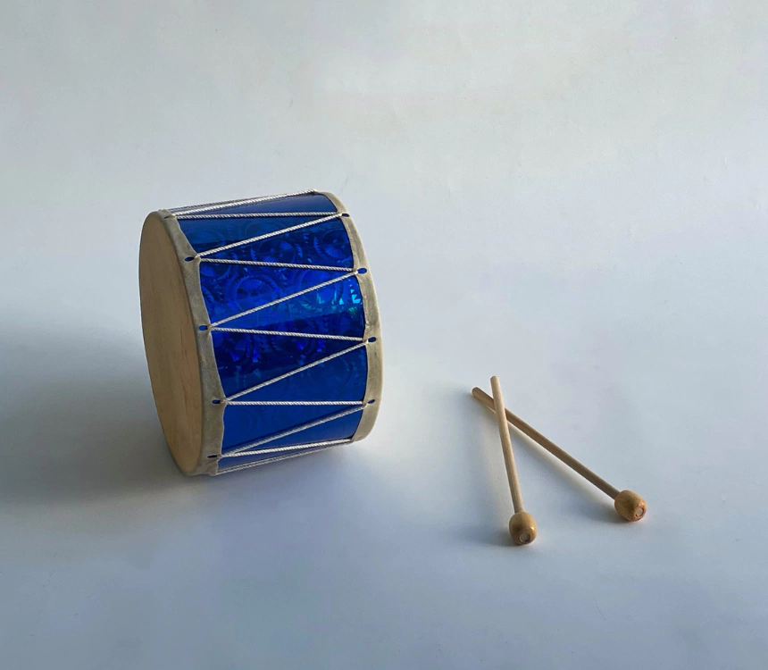 El bombo mide 16,5cm de diametro y 11cm de ancho, contiene dos baquetitas de 18cm y 17cm