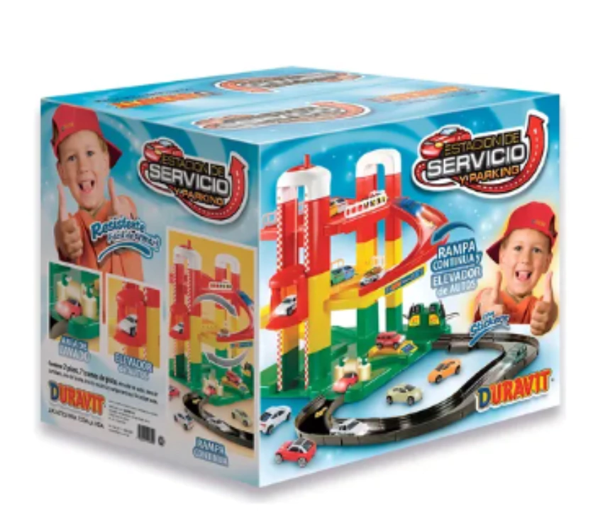 Contiene: 2 pisos, 7 tramos de pistas, elevador de autos, sector de lavado, estacionamiento, zona de surtidores, área mecanica y rampa continúa. Incluye stickers