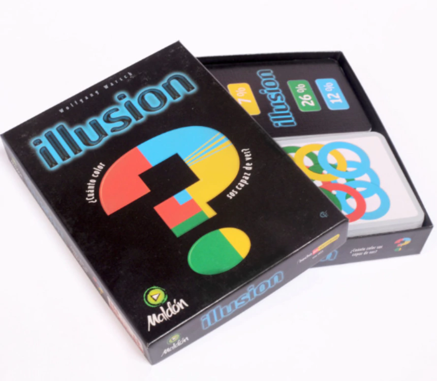 Illusion es un desafío visual. ¿Confías en tus ojos? ¿Cuánto color sos capaz de ver? Las reglas son muy simples: Sacas una carta y la tenes que ubicar dependiendo de la cantidad de color que crees que tiene. Pueden jugar grandes contra chicos y es ideal para jugar en familia. ¿Quién tendrá la vista más afilada?
