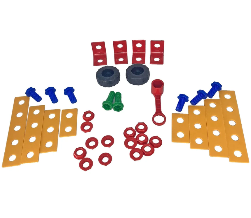 Juego de construcción plástico muy resistente, fácil de ensamblar, posibilidades ilimitadas de combinación.