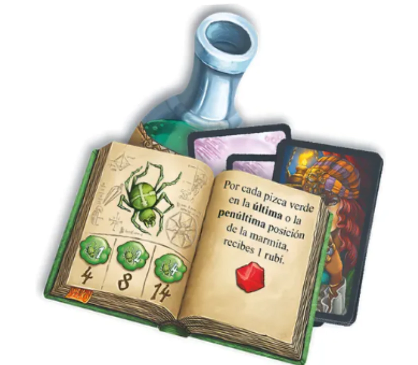 Cada jugador tiene su propia bolsa de chips de ingredientes. Durante cada ronda, simultaneamente sacan fichas de sus bolsas y las agregan a sus macetas. Cuanto mayor sea el valor nominal de la ficha extraída, más se colocará en el patrón de remolino del bote, lo que aumentará el valor de la poción. Empuja tu suerte lo más que puedas, pero si agregas demasiadas bombas de cereza, ¡tu bote explotará!.